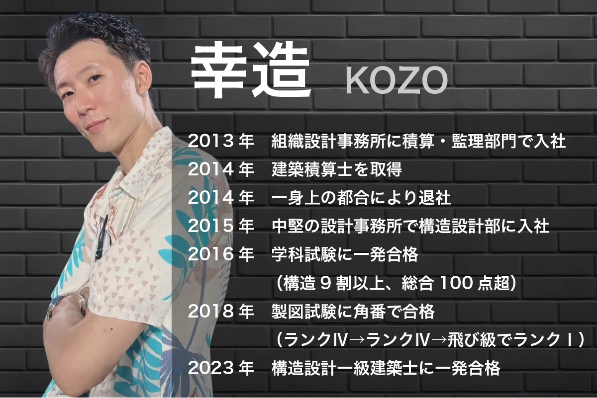 その後、33歳という若さで一級建築士の中でも3%しか存在しない構造設計一級建築士を取得。